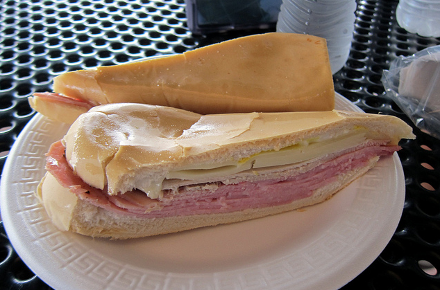 2. Megvajazom a kenyereket, majd az alsó kenyérre körözöttet és vöröshagymaszeleteket rakok, majd egy másik szelet kenyér jön, amire sonka és paradicsom. Újra kenyér márványsajttal megkenve. A tetejére egy szelet kenyeret teszek.